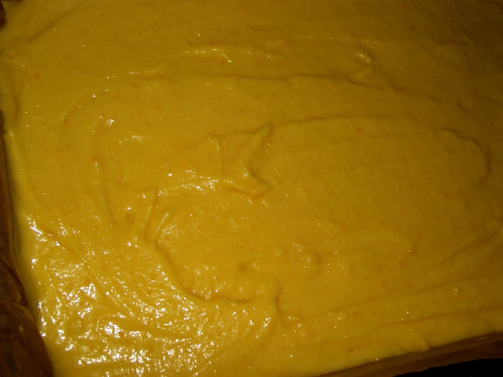Turnam aluatul in tava tapetata cu hartie de copt.